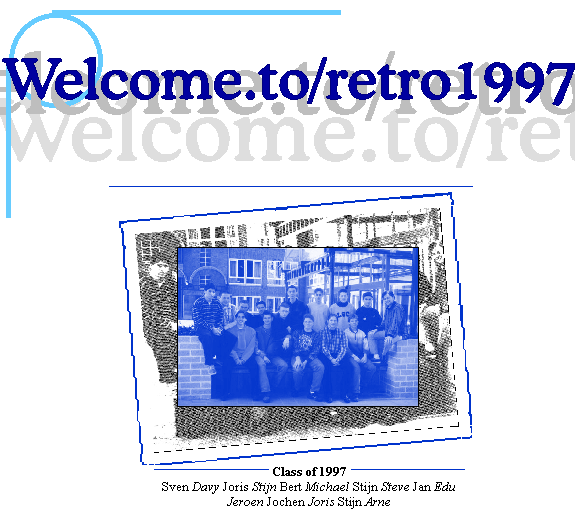 What's the meaning of the name Retro 97? Quite simple: three concepts have been merged. First, retro, a reunion always boils down to going back in time. In the second place reto, the abbreviation of the word 'retorica', the last year of secondary education in Belgium and finally 1997, the year we all graduated at the 'Aangenomen College' of Sint-Truiden (B).